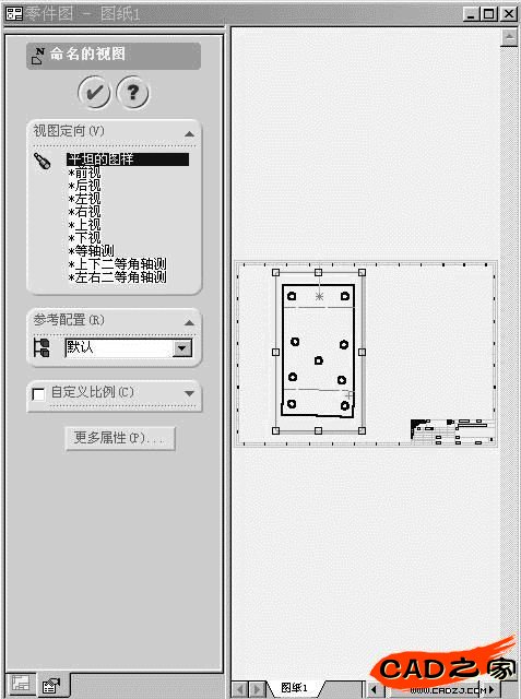 4.3單擊插入→工程視圖→命名視圖,在PropertyManager中選取平坦圖樣,將視圖移動到圖紙范圍的適當(dāng)位置,完成工程圖,如圖8所示。