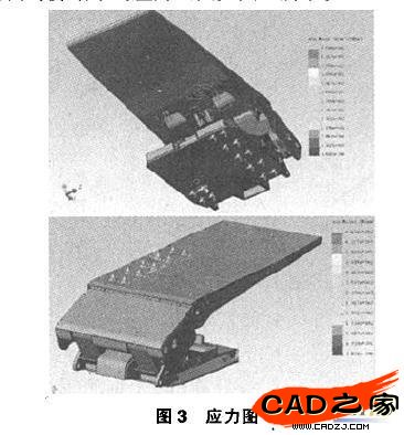 利用Cosmos/works有限元分析軟件可對支架數字實體模型進行應力分析,找到應力分布規律,確定安全系數,優化結構尺寸。