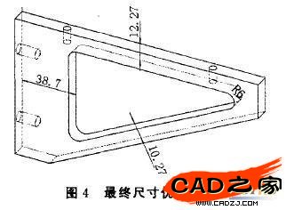 通過優(yōu)化設(shè)計,懸臂托架的體積由117289.96mm3變?yōu)?0965.85mm3,重量減輕了0.365 2kg,即減輕了40%。固有頻率從改造前的417Hz變?yōu)閮?yōu)化設(shè)計后的332. 97Hz,遠(yuǎn)離了共振點(diǎn)。穩(wěn)定受力中最大形變點(diǎn)的形變?yōu)?. 06mm,很好地滿足了改造要求。