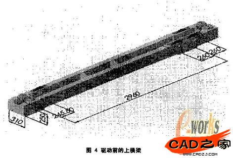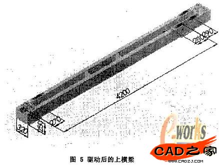 3.3驅動生成不同尺寸的上棋梁裝配體生成不同尺寸的上橫梁裝配體可采用以下方法:① 手動修改:在基體一拉伸一薄壁特征上雙擊以顯示其尺寸,修改對話框出現,更改尺寸數值,單擊重建模型,裝配體中的所有的零部件會自動更新:選擇了所有配里。② 接口程序自動修改:通過 vc++驅動程序改變內部變化的大小,并完成重建模型,裝配體中的所有的零部件也會更新。這樣我們就得到驅動后的上橫梁,如圖 5所示。