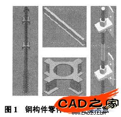 在本例主要需要4種零件,包括鋼管柱、熱扎H型鋼梁、牛腿環板、鋼柱對接連接器,其次是一些附件包括墊鐵組、連接用的螺栓、螺母及栓釘等。如圖1所示。