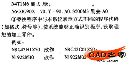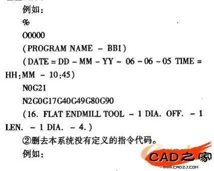 ①刪去程序開頭、段尾一些相對于系統(tǒng)沒必要的說明解釋性的程序代碼,在程序中間換用刀具的說明也應(yīng)刪除。