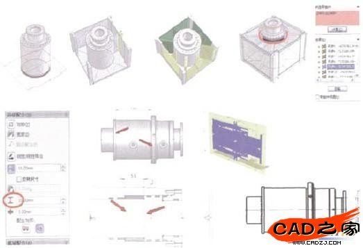 SolidWorks提倡自頂而下的設(shè)計(jì)方式,并提供專用的工具幫助用戶實(shí)現(xiàn)。動(dòng)態(tài)以及靜態(tài)的干涉檢查工具可以檢查裝配的不合理,以及生成拆件圖及其工程圖,保持設(shè)計(jì)的全相關(guān)性,如圖6所示。