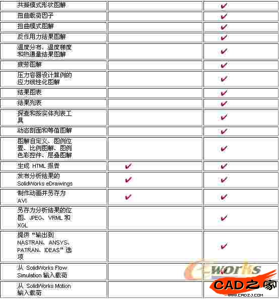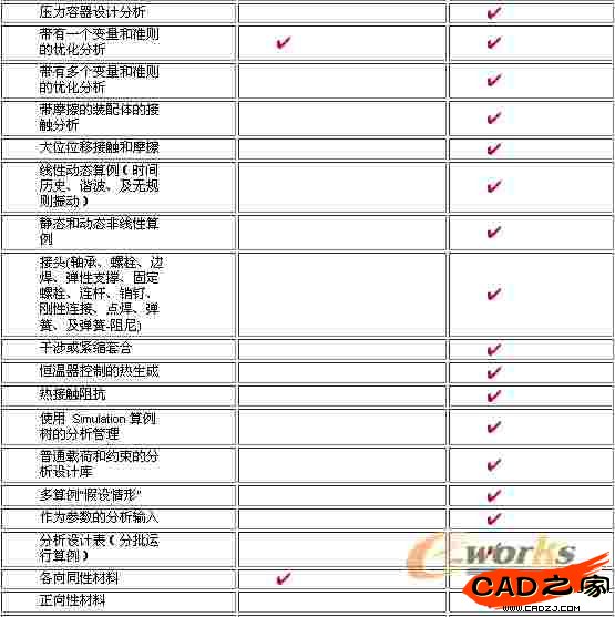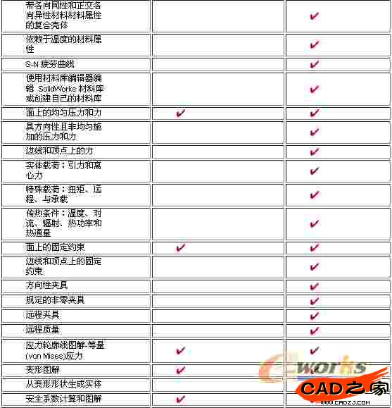 針對非線性分析, SolidWorks Simulation有多種軟件包可供使用。SolidWorks Simulation Professional 是 SolidWorks SimulationXpress 的正常升級版本。下表對 SimulationXpress 和 SolidWorks Simulation Professional 的功能進行比較: