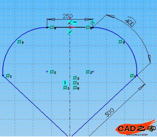 第二步:新建零件,建立弓的基本草圖。注意圓弧使用長度約束,就是激活約束尺寸后,先點(diǎn)弧兩端再點(diǎn)弧本身。而弧的半徑不約束,拖動可以達(dá)到以下效果。