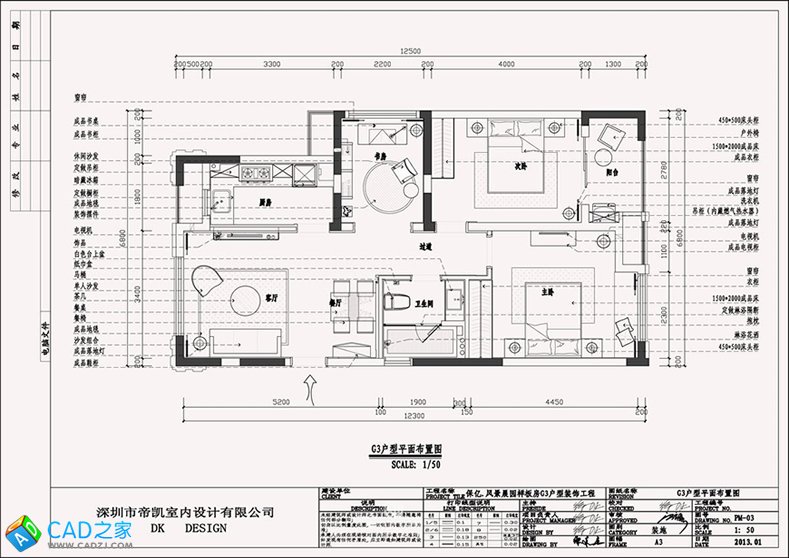 風景晨園G3戶型樣板房現代風格施工圖附效果圖