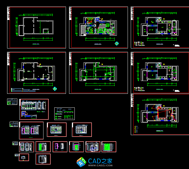 7套風格不同的100-110平小三房室內裝修施工圖紙