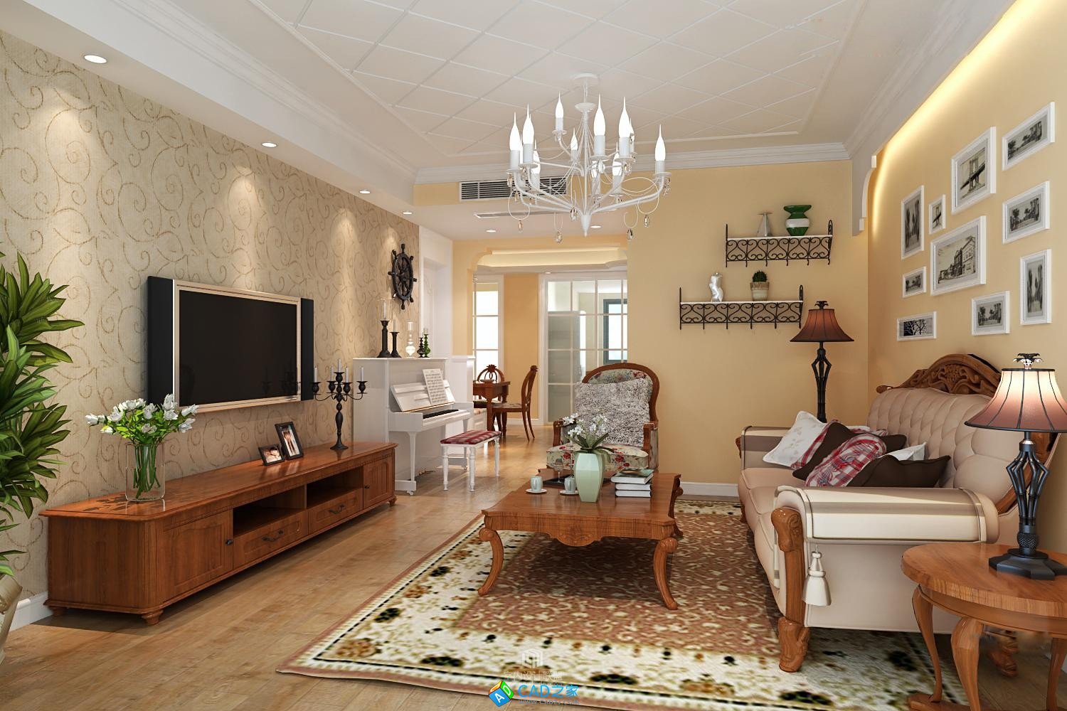 田園風格全套CAD施工圖加效果圖