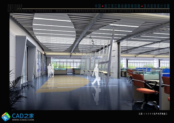 浙江移動移動客服中心位于濱江濱文路,在整個濱江移動通信樞紐樓33000平方,其中客服機房大樓室內裝飾設計面積為10226平方米。業主對室內設計裝飾提出高要求,故在設計中運用很多新材料來達到好的效果。