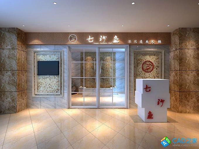 七秒魚活魚鍋店裝修施工圖及效果圖下載