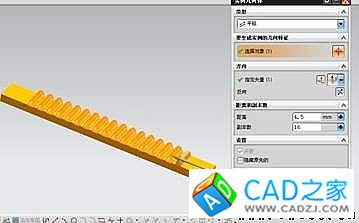 第三步、運用實例幾何體工具復制上幾步建立的齒條模型,距離為4.5mm,副本數為16,最終效果見下圖。