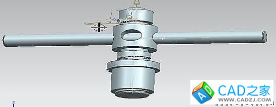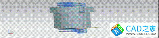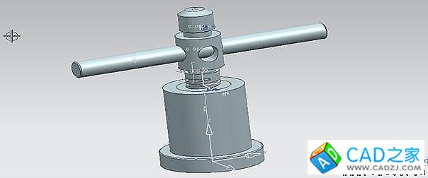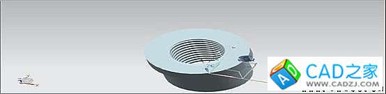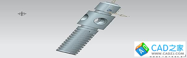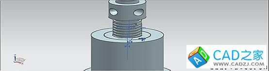 從頂部開始,繪制頂面。然后繪制五個凸臺,通過WCS構(gòu)造兩個點,繪制兩個垂直相交的通孔。隱藏主體,重新定位原點。重復(fù)第五節(jié)繪制螺旋體,顯示主體,求差。