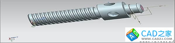 先畫圓柱,再在其上畫槽和倒斜角,繪制螺紋。