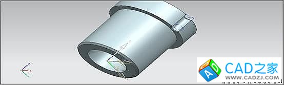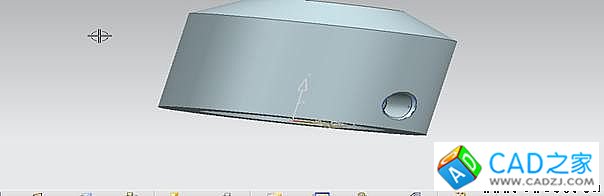 2,單擊“特征”工具條上的圖標(biāo)按鈕“倒斜角”,彈出“倒斜角”對話框,選擇圖所示上底邊緣,在對話框中設(shè)置非對稱型倒斜角,距離1輸入10,距離2輸入14.5,利用“反向”圖標(biāo)按鈕設(shè)置倒角的方向,生成倒角。