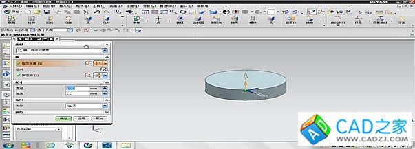 1,單擊【圓柱】,創(chuàng)建圓柱,指定點(0,0,0,)為圓心,直徑190,高度35,單擊“確定”生成圖示圓柱體。