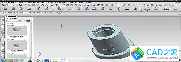 從底部開始,繪制扁圓柱體,在上表面繪制凸臺,然后繪制孔(順序由上往下)。倒斜角。通過WCS構(gòu)造點,繪制螺紋孔。