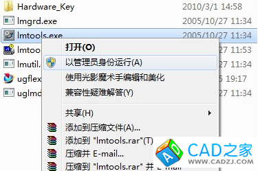 2.設(shè)置lmtools。打開文件夾D:Program FilesUGSLicense ServersUGNXFLEXlm,打開lmtools.exe(win7下注意要使用右鍵以管理員身份運行),如下圖: